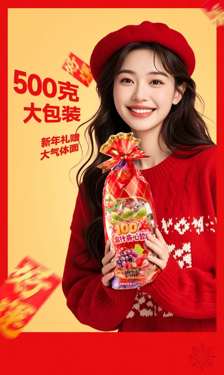 Each piece comes individually wrapped in a 500g pack, and the price is seriously sweet. With 6 flavors and multiple 4D fruit shapes, these chewy, bouncy candies are both gorgeous and delicious. They’re an absolute must-have on your New Year stockpile list!
